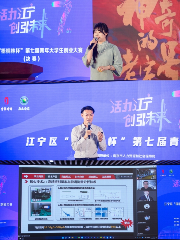 “梧桐林杯”第七届青年大学生创业大赛由中共南京市江宁区委组织部、南京市江宁区人力资源和社会保障局主办,南京江宁人才集团有限公司承办,本届大赛共征集到623个项目,历时4个月,经过资格审查、初赛和复赛路演,层层选拔出30个决赛项目。我校有8支团队进入决赛,经过展示角逐,最终“鹰眼”“以简驭繁”2支团队包揽决赛一等奖,“天核智探”“新媒体文创”“航天风暴”等项目分获二、三等奖和优秀奖。