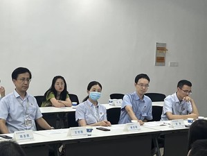 在158厂,副总经理郭建忠,光电产品部副部长亢海龙、航空航天与防务研究院副院长周必海,党委干部部/人力资源部部长常国亮、副部长喻玲等出席活动。在郭建忠的陪同下,师生参观了公司新区展厅、生产车间现场、研发楼等,对公司连接器研发生产的精细化分类程度、产品的高科技含量、市场的广阔需求、科研中心的国内外布局留下了深刻印象。郭建忠表示非常欢迎南航毕业生,特别期待物理学科研究生加入公司预研部门帮助解决机理问题,将为硕博士提供优厚待遇及广阔发展空间。陈修文对公司的智能化水平、管理水平给予了高度评价,介绍了物理学院拥有成熟的学科,同时作为新成立的学院希望能够与公司加强双向宣传。刘友文围绕产学研对接、项目攻关、学生实习的深入合作提出了建议。