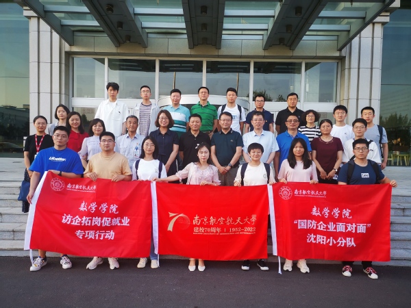 为深入贯彻党中央、国务院及江苏省委、省政府关于高校毕业生就业工作的决策部署,落实学校访企拓岗促就业专项行动要求,推动校企合作、深入了解国防企业人才需求,促进毕业生投身国防就业主战场,7月25日至26日,数学学院党委书记许静、院长王春武带队赴辽宁沈阳开展“国防企业面对面”活动,先后走进航空工业沈阳飞机工业(集团)有限公司、航空工业沈阳飞机设计研究所、中国航发沈阳黎明航空发动机有限责任公司、中国航发沈阳发动机研究所。学院党委副书记周佼佼、副院长蒋建林、校就业创业指导服务中心就业管理部主管张月铭、系主任、教务员、辅导员代表以及来自全校6个学院的15名本硕博同学共同参加了走访。