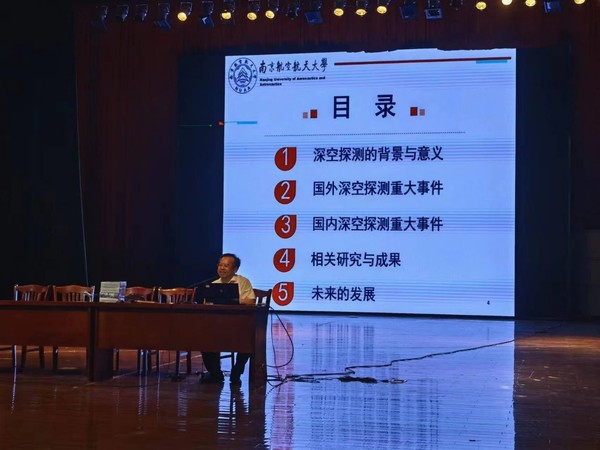 2022年8月15日,在江苏省宜兴中学礼堂,国家“万人计划”教学名师、教育部教学指导委员会委员、国务院特殊津贴专家、我校教授王成华为师生们带来了一场精彩绝伦的报告——《深空探测之旅》。