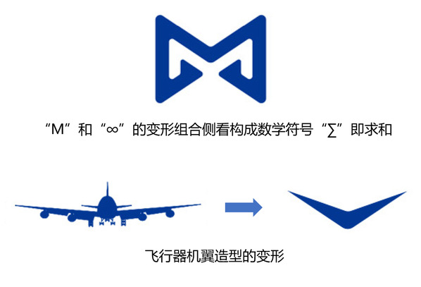 数学学院院徽为圆形,主体设计为字母“M”和数学符号“∞”的变形组成。“M”取数学英文Mathematics的首字母,寓意学院夯实基础学科、争创卓越理科的国际视野。“∞”为无限符号,象征数学在一切科学中的无限作用,表达学院在响应国家需要、时代要求、学校“双一流”建设中的无限可能。“M”和“∞”的变形组合侧看构成数学符号“∑”即求和,寓意学院集聚智慧、汇聚资源、凝聚力量助力发展。主体设计上方为飞行器的机翼造型,体现学院围绕学校“三航”特色,深化学科内涵,厚植学科优势,实现学科腾飞。院徽标志体现数学的对称之美,整体色调为蓝色,传达出数学的理性之风。