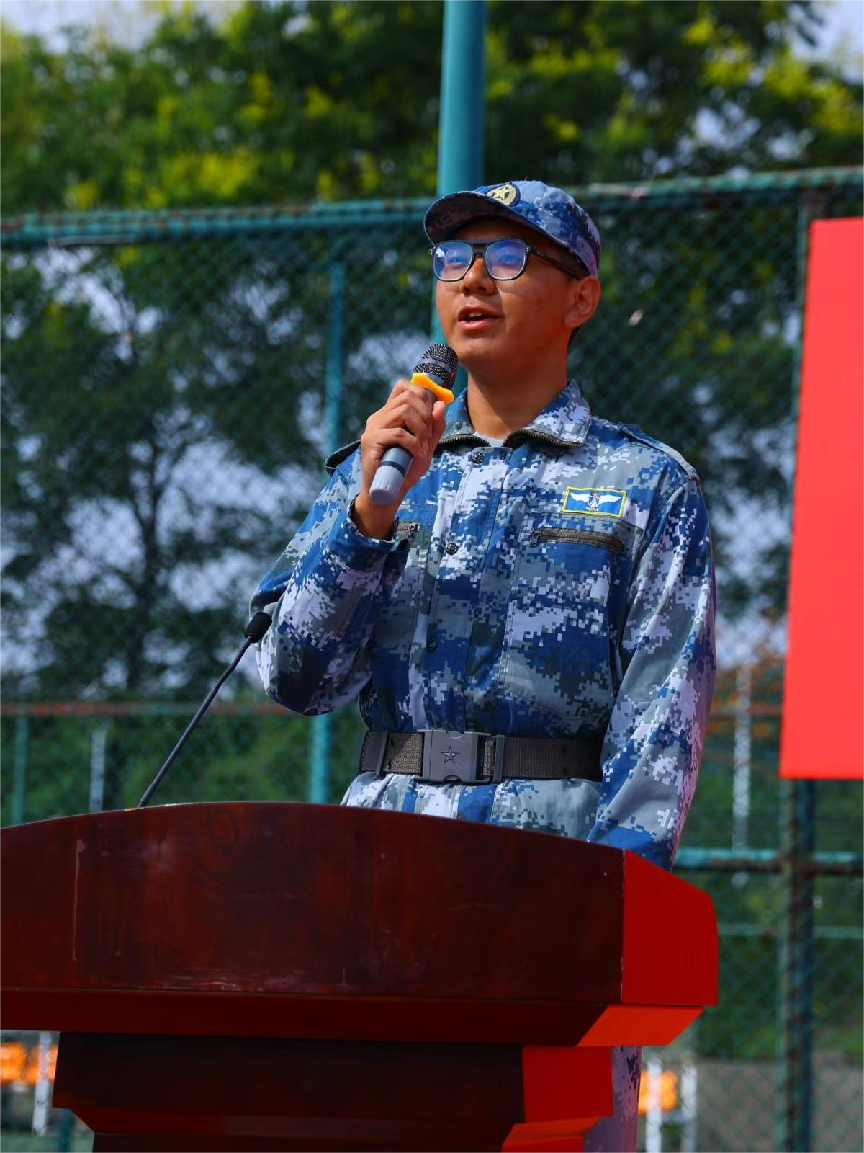 学生代表孙博、周宇森分别发言。他们对本次承训部队的教官、学校各部门的老师和工作人员的辛勤付出表示衷心的感谢,表示将在今后的生活中当继续持坚韧毅力,怀进取之心,向英雄学习、向前辈学习、向榜样学习,争做堪当民族复兴大任的时代新人。