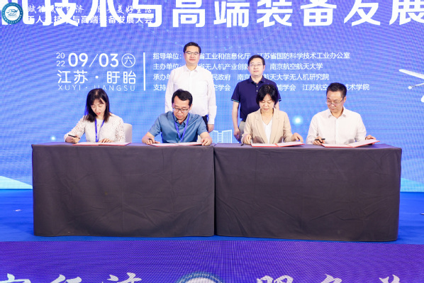 我校无人机研究院与盱眙县人民政府签署战略合作协议。江苏省国防科学技术工业办公室副主任卢载贵发布了《江苏省无人机产业白皮书》。中国航天科工集团三十一研究所所长凌文辉、我校通用航空与飞行学院副院长张洪海等专家作了大会主题报告。大会还举行了行业应用主旨报告、政府需求报告和企业需求报告发布等。大会还组织了无人机创新产品户外展示飞行,举办了无人机技术与高端装备发展成果展,多家企业携带无人机最新技术成果、应用产品、解决方案集聚亮相。