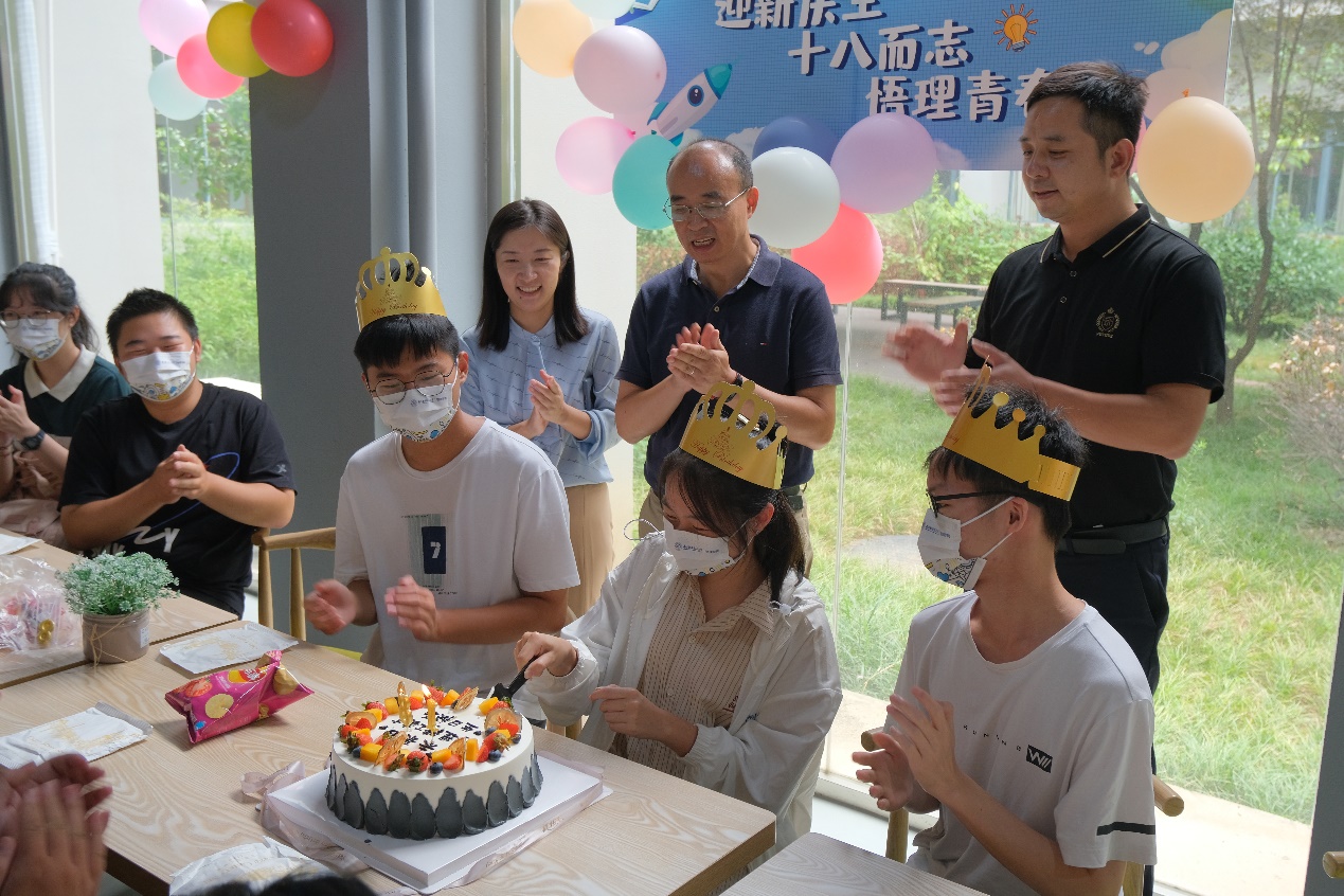 为欢迎新生加入物理学院大家庭,老师和学长学姐们一起为9月份过生日的新生集体庆生,在仪式感满满的十八岁成人礼生日会上,新生专属的“未来的明理精工英才”蛋糕让小寿星们感到惊喜和鼓舞。在欢快的生日歌后,老师们的殷切嘱托和同学们温馨祝福共同点亮了十八岁的物理新征程,新生们同时许下了对未来四年成长发展的美好愿望。