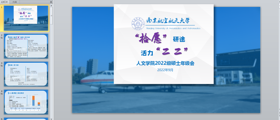 金秋硕果日,迎新正当时。8月30-31日,人文与社会科学学院2022级硕士研究生新生顺利完成入学报到。为了让同学们尽快熟悉校园环境,更好地进入研究生学习和生活状态,学院组织召开了“拾愿”研途·活力“二二”2022级线上硕士年级会,2022级研究生辅导员施俞辛主持了会议。
