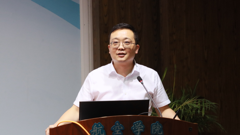 院长魏小辉向新生介绍了学院及系所概况。他以“筑梦航空,共筑一流”为主题,围绕学院发展历史、组织架构、师资队伍、教学科研成果以及未来发展等方面,全方位展示了学院办学实力。他鼓励新生们要牢记自主创新、自觉服务国家高水平科技自立自强的使命,锻炼在研究中发现问题、解决问题的能力,投身航空航天事业,做德才兼备的社会主义建设者和接班人。