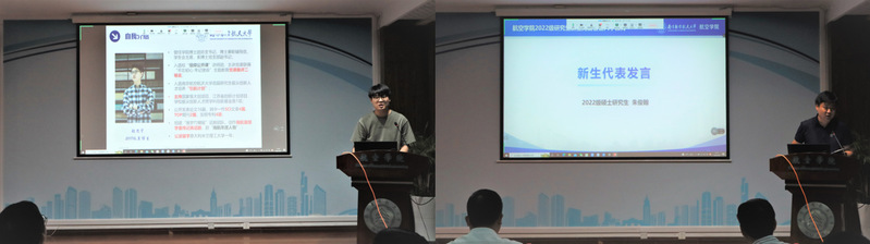 人机环境与控制系2018级博士生张思宇作为优秀老生代表发言,结合自己的求学经历向学弟学妹们传授了科研学习经验,建议大家要做好时间管理,制定研究计划。2022级硕士生朱俊翰作为新生代表发言,他表示,要立志专心科研,在未来的研究生时光里有所成长、有所成就,为祖国航空事业贡献力量。