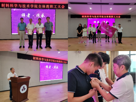 会上,学院还举行了2022年退休教师荣休仪式,在 “光阴的故事”主题视频中回顾了他们为学院贡献、奋斗的岁月征程,荣休教师代表李澄做了主题发言。仪式上,荣休教师为新入职教师佩戴校徽并将院旗传递到他们手中,希望材料人继续弘扬“大气、奉献、务实、创新”的院训精神,踔厉奋发,笃行不怠,以昂扬的精神斗志喜迎建校70周年,以优异的办学成绩迎接党的二十大胜利召开。