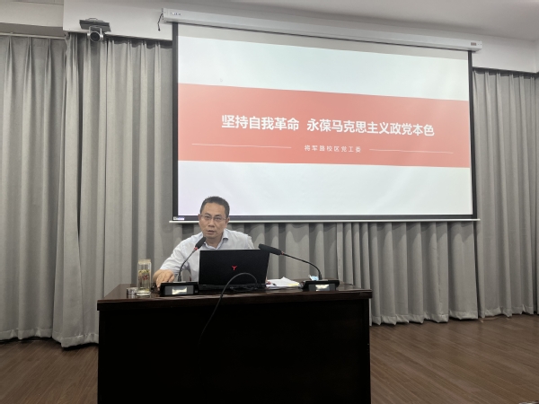 为扎实推动党史学习教育常态化长效化,贯彻落实“三个一”联系和领导干部深入基层联系学生制度,9月9日下午,将军路校区党工委书记邬沛雄在行政楼300会议室讲授题为“坚持自我革命,永葆马克思主义政党本色”的专题党课,将军路校区党工委机关党支部全体党员、自动化学院控制学科研究生第五党支部等50余名党员参加本次学习。