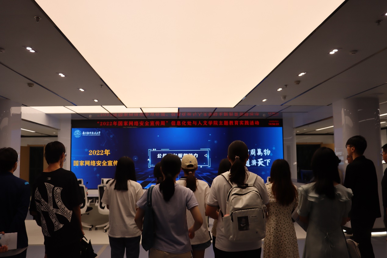 为进一步加强师生对虚拟网络空间的认识,提高师生的网络安全意识,9月8日下午,信息化处、人文学院在我校智慧校园指挥中心开展“2022年国家网络安全宣传周”主题教育实践活动。