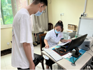 为提高体检效率,校医院动员所有医务人员力量,在每个岗位均增加了人手,院领导带头参加体检,并随时协调掌握体检现场状况,以确保完成每天预约体检学生人数。体检期间,校医院每日完成近2000名学生的抽血化验、胸部摄片、内外科查体、辨色力、测血压等检查。为保证体检工作安全、有序进行,医院在抽血处还设立了急救点,安排了专人保健,并准备了充足的免费糖块和饮用水,对有晕针迹象的学生,布置了志愿者和护士进行耐心安抚,确保他们能顺利完成抽血检查。