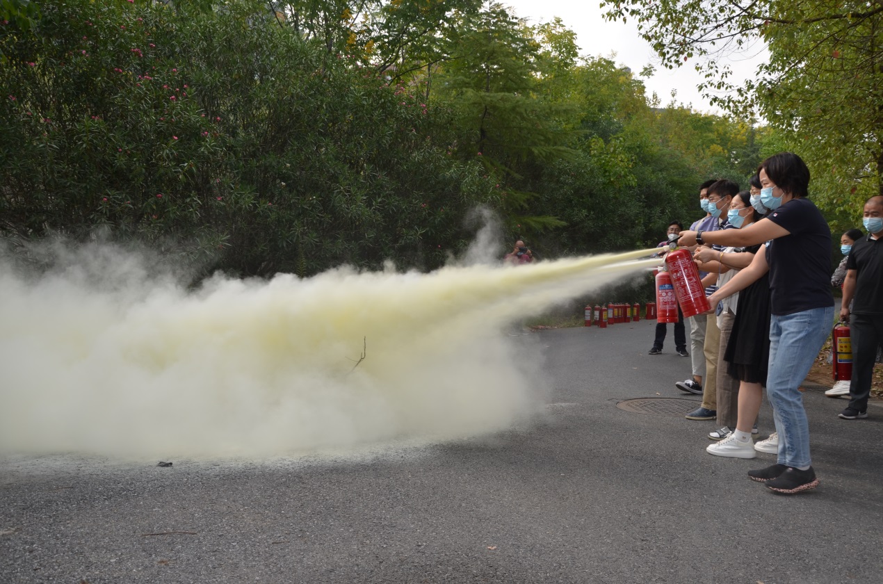 在消防器材实际操作环节,保卫处消防科老师给大家讲解了灭火器的种类、灭火器的操作流程以及日常维护方法,随后老师们依次使用干粉灭火器进行灭火演练。