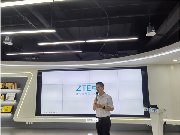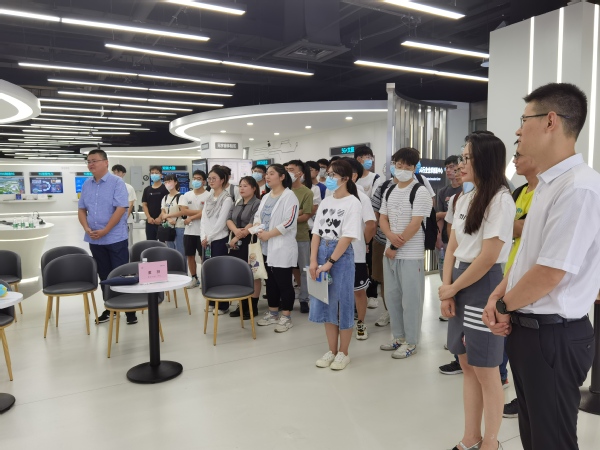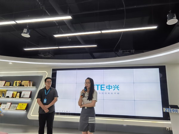 师生一行首先来到了中兴通讯的5G展厅,在华东区招聘经理姜知非的讲解下,详细了解了中兴通讯5G技术的发展历程以及当前在智慧城市建设、智慧工厂等领域的应用。疫情背景下,中兴通讯积极迎合国家需求,开发出医护人员标准化消毒流程,将数字智能技术应用于抗疫事业中,这让在座的师生无不感到惊叹。
