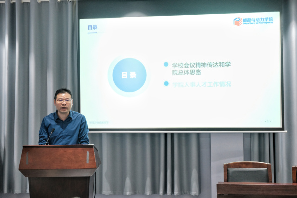 9月16日下午,能源与动力学院在十号楼619报告厅召开2022-2023学年第一学期全院大会,全体院领导及教职工参会。会议由学院党委书记王中叶主持。