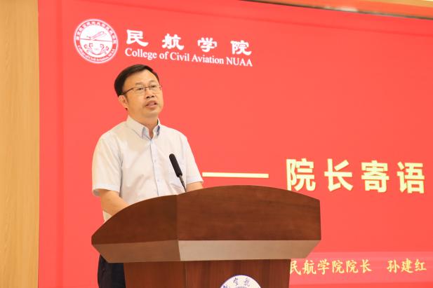 在院长寄语环节,孙建红代表学院对2022级研究生新生的到来表示热烈欢迎,提出三点希望:一是希望同学们坚定思想、认清时代,做有追求的民航人,时刻谨记寒窗苦读的初心,保持高度的自觉心和自省力,不受繁杂事物干扰;二是希望同学们探索创新、实干笃行,做有本领的民航人,夯实专业知识、练就过硬本领,为创新型国家建设奉献青春力量;三是希望同学们志存高远,胸怀家国,做有担当的民航人,承担时代使命,让人生历程和民族复兴进程同步共振。