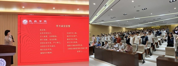 活动最后,学院组织全体研究生新生在吴薇薇的带领下重温了学术诚信誓言,全体研究生用铮铮誓言表明了恪守学术诚信的坚定决心和端正品格。