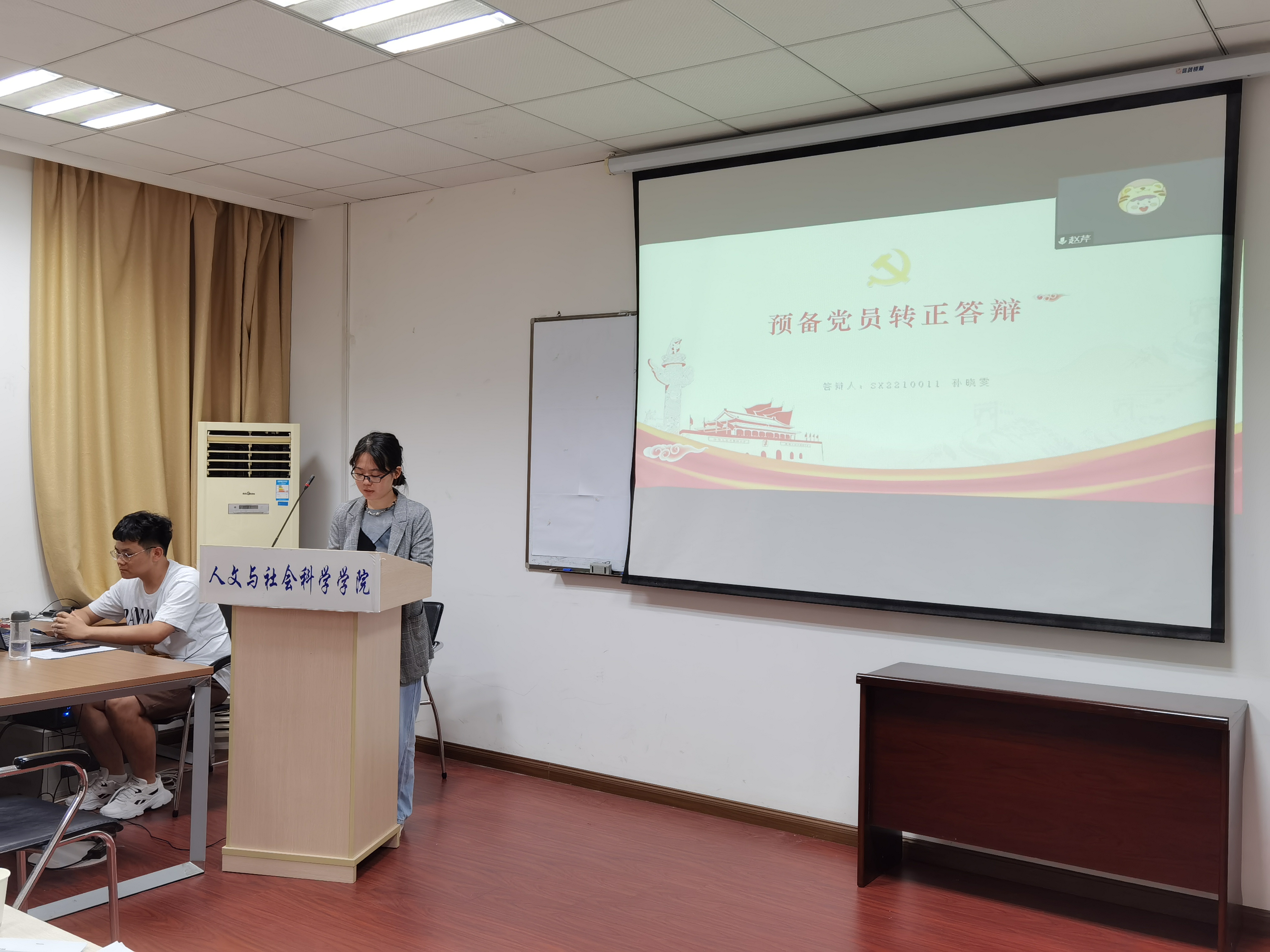 为进一步规范党员发展程序,提高党员发展质量, 9月19日下午,人文与社会科学学院在210会议室召开了预备党员转正答辩会。为严格落实疫情防控要求,本次会议采用线上线下相结合的方式。院党委副书记刘思辰、正科级组织员谢丽、辅导员参加了评审。