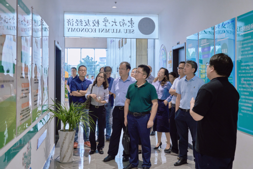 在润州区科技镇长团团长邓晶的陪同下,周德群一行首先来到东南大学校友经济产业园,参观了解园区发展现状、项目招引成果,并与入驻企业负责人深入交流,了解企业经营发展情况。随后,代表团来到官塘创新社区管委会,听取创新社区城市规划、产业布局、重点项目建设等方面的情况介绍。