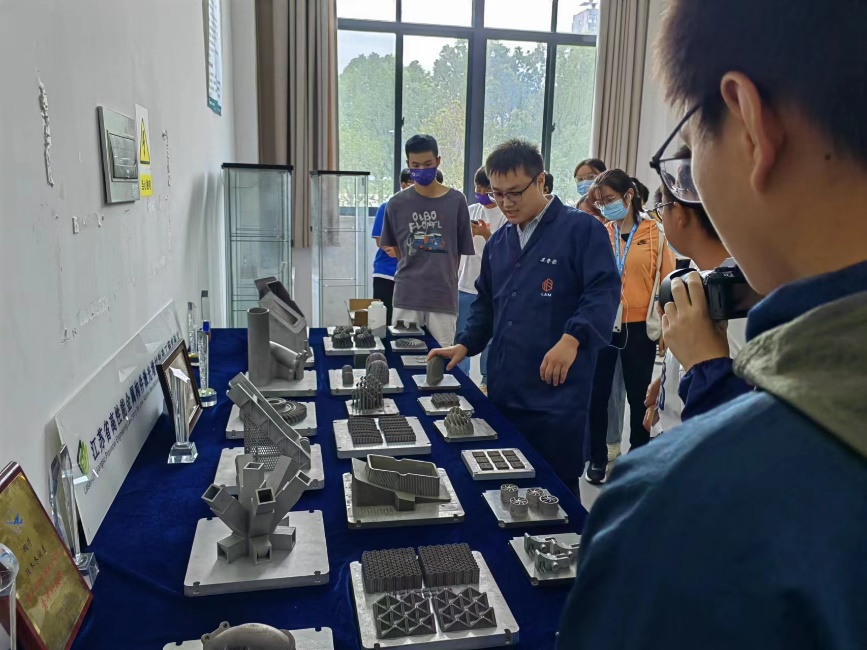 在学院有序安排下,同学们首先来到了顾冬冬教授的高性能金属构件激光增材制造实验室。在学长的耐心解说下,同学们对激光增材制造技术的内容与前景有了初步了解,激光增材技术对我国航空航天领域意义重大,为我国航空航天事业做出了重大贡献。