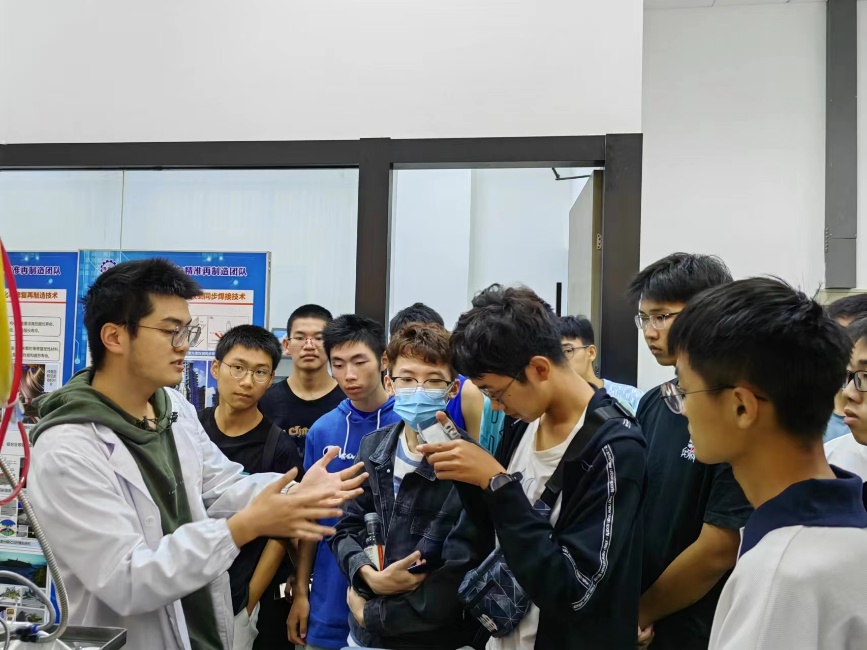 本次实验室参观活动以班级为单位进行,参观内容涉及高性能金属构件激光增材制造实验室、激光焊接及再制造研究所、超级绝热复合材料实验室、焊接数字化/电弧增材再制造实验室、柔性成形技术与装备实验室、先进结构材料及电子束快速成形实验室、微电子封装材料与封装工艺实验室。