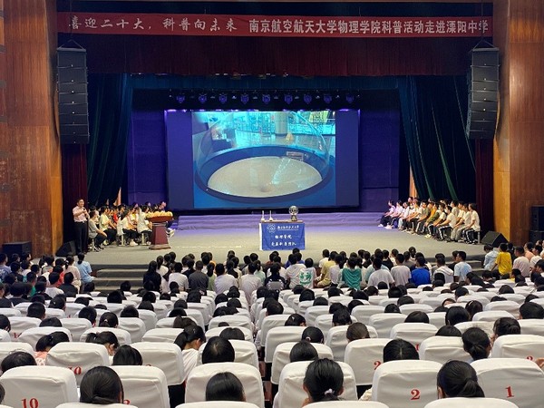 为普及科学知识、弘扬科学精神、传播科学思想,进一步加强校地联动,9月中旬,物理学院走进溧阳中学开展“物理探索+”系列科普活动,送基础学科科普文化进中学。溧阳中学德育处主任杨福松、我校物理学院副院长李晋斌、党委副书记欧珊、团委书记梁欢,“爱益科普”团队成员与溧阳中学1200余名高中师生参加了此次活动。