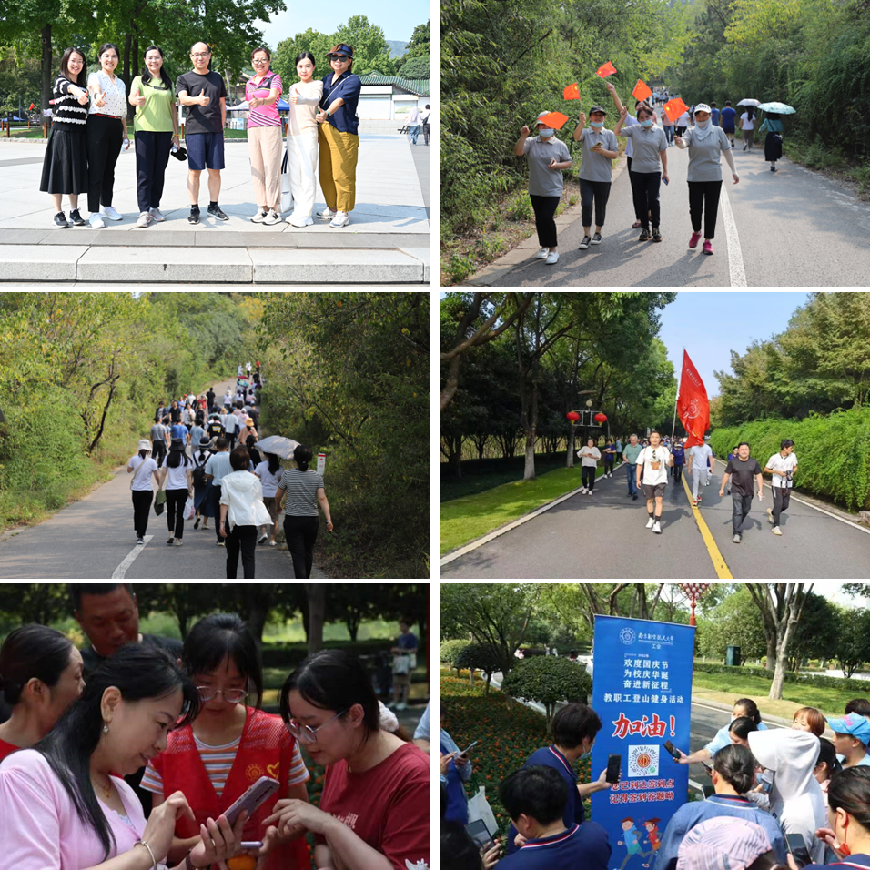 9月30日,在国庆节即将到来之际,为迎接党的二十大胜利召开, 庆祝国庆及欢庆学校70周年华诞,增强教职工健康意识,校工会组织教职工分别于明故宫校区、将军路校区和天目湖校区开展了登山健身活动,本次活动共吸引了近2000名教职工参加。