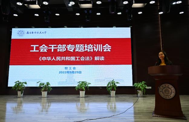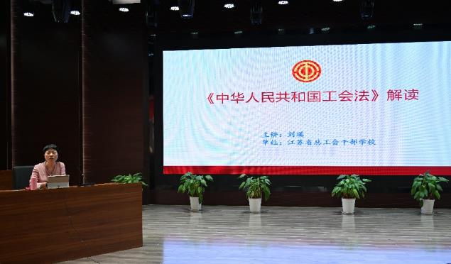 江苏省总工会干部学校教研室主任、省“333工程”培养对象刘瑛副教授受邀对《中华人民共和国工会法》进行了解读,她对《中华人民共和国工会法》的修改背景、主要修改内容等进行了介绍,同时结合高校工会工作实际情况,就新时代如何依法履行工会的职责进行了深度解析,还对工会有关重点工作的具体做法进行了详细介绍。
