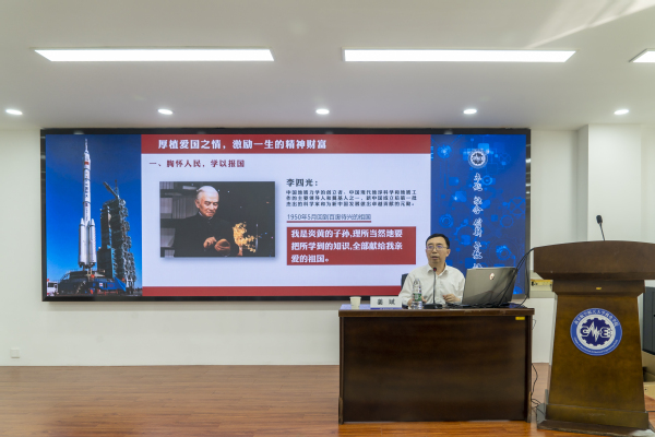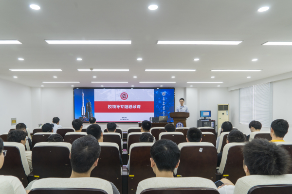 姜斌首先为同学们介绍了习近平总书记的回信内容,并针对回信的主要精神向师生们进行了延伸解读,从厚植爱国、砥砺强国、奋进报国三个方面进行探讨。讲课中,姜斌首先介绍了回信中的对象身份,围绕习近平总书记就留学人员工作发表的一系列重要讲话作出解读。他为在座的师生们生动地讲述了一个个学以报国的故事,从享誉国际、卓有建树的地质学家李四光,到中国“核司令”程开甲,再到机电学院的余承业等创校老教授们,他与在座的师生们分享了众多留学科技人员奋不顾身一心回国献身国家建设的感人故事,这更加坚定了同学们一心报国、献身国防的价值追求与坚守。他还与大家分享了自己国外求学工作期间的趣闻与经历,鼓励同学们打开个人视野,扩充知识储备,在研究方面要紧跟国际科研前沿和面向国家重大需求,培养对科学研究的兴趣和创新创优的品质。