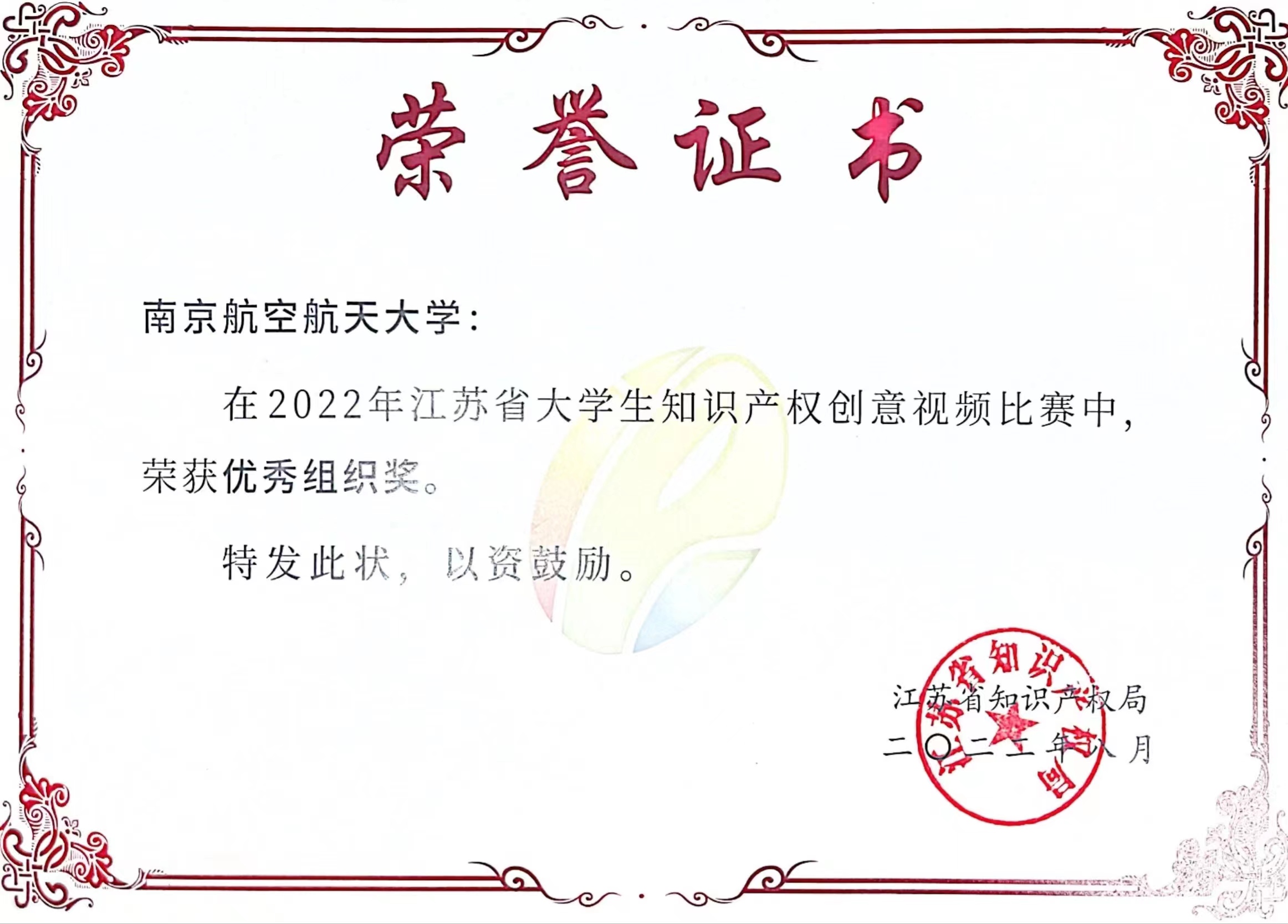 近日,2022年江苏省大学生知识产权赛事活动创意视频比赛单元圆满结束,我校积极组织学生参与,荣获一等奖一项、二等奖一项、三等奖一项,学校荣获优秀组织奖。