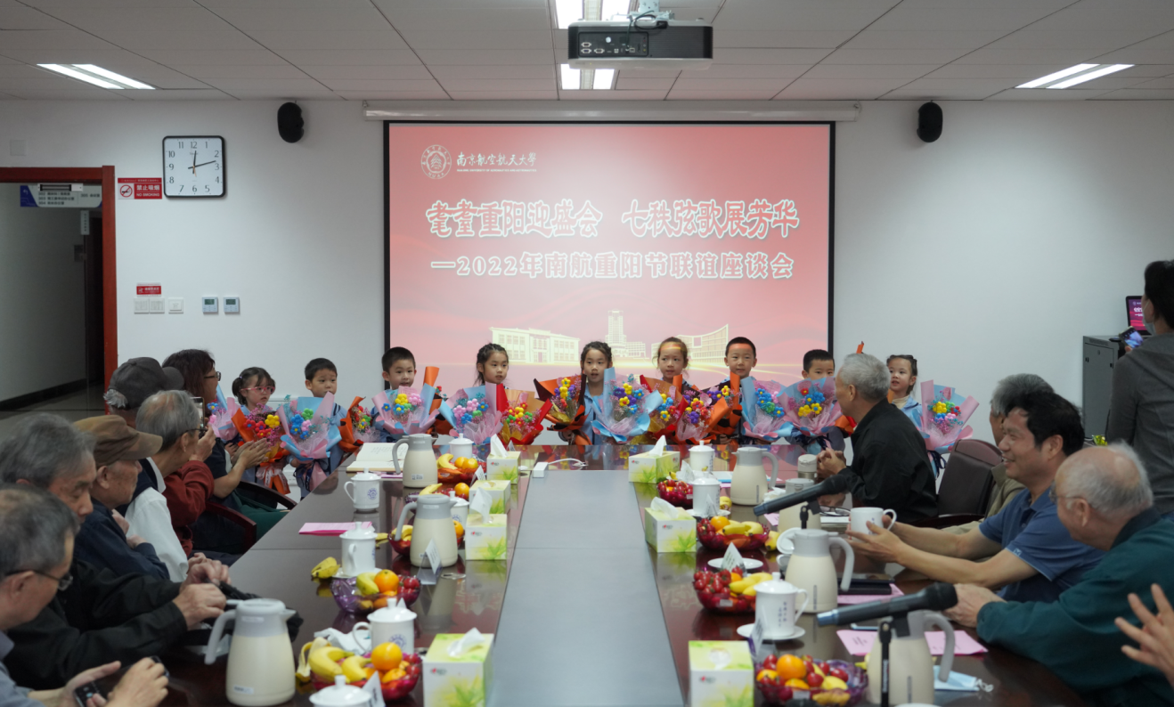 最后,南航幼儿园的“航二代”小朋友代表为与会老同志送上亲手制作的手工花束,表达节日祝福。