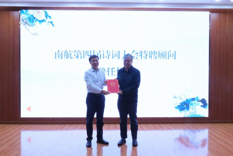 高峰是中国古代文学专业教授、博士生导师,中国词学研究会常务理事,江苏省古代文学学会副会长,江苏省中华诗学研究会副会长。此次讲座是南航第四届诗词大会系列活动之一,作为诗词大会的承办单位,人文学院聘请高峰教授为特聘顾问,院党委书记楚广兴在现场为其颁发了聘书。