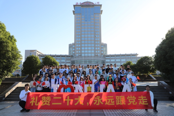 伴随着歌声,同学们的队列依次举起从1921年中共一大到2022年中共二十大的展示牌,仿佛二十大正一步步向我们走来,震撼人心,同学们更加深刻体会到了百年来党的坚定步伐,对党的二十大有了更深切的认识和理解,“礼赞二十大,永远跟党走”是同学们的共同心声,“传承数学魂,奔赴新征程”是数学学子的共同誓言。