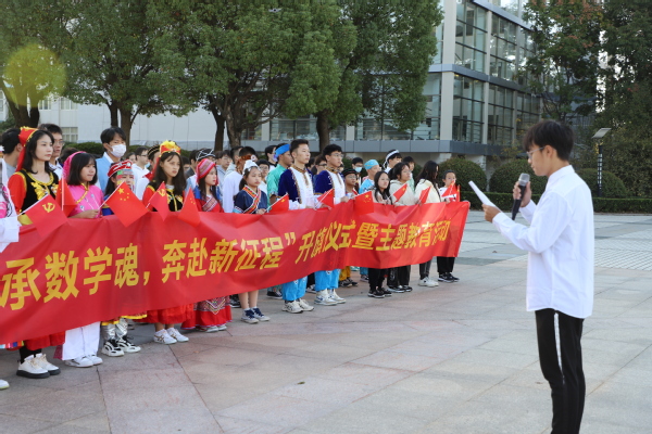 10月10日,数学学院在国旗广场举办“礼赞二十大,永远跟党走,传承数学魂,奔赴新征程”升旗仪式暨主题教育活动。全体预科生、本科生、研究生和全体辅导员参加活动,学院党委副书记周佼佼,新疆内派教师玛依拉·赛依力,学院团委书记戚月共同参加活动。活动由学院2022级本科生谷立煊主持。
