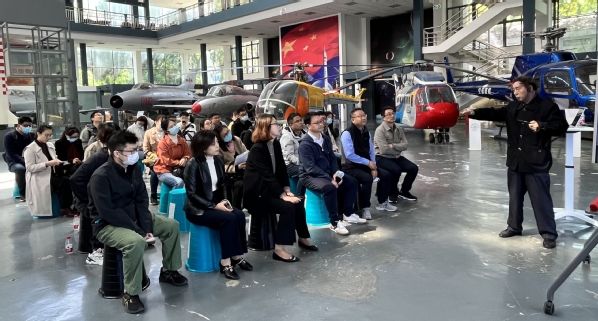昂海松首先向大家讲述了馆内不同型号飞机的结构与背后的故事。站在某型号直升机前,昂教授回忆起我国曾历时四年成功研制出整机性能达到国际第三代水平的直升机,这是我国高端装备制造的重大突破。这次突破填补了我国大型民用直升机研制的空白,使我国大型直升机研制能力与欧、美、俄齐头并进,实现了民族梦想,人民期盼。昂教授借此进一步阐释了南航的历史使命,让老师们对“南航精神”有了更深刻的理解,对“航空报国”有了更具象的感受。