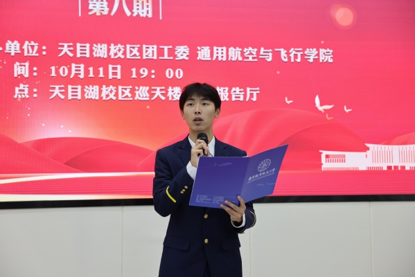 10月11日晚,通用航空与飞行学院联合天目湖校区团工委在天目湖校区牧星楼报告厅成功举办“喜迎二十大,永远跟党走,奋进新征程”2022年南京航空航天大学梦想公开课暨暑期社会实践成果分享会。校团委副书记王洋、通用航空与飞行学院党委副书记魏慧冬、天目湖校区团工委书记肖杰、通用航空与飞行学院各年级辅导员以及2022级全体同学通过线下和线上相结合的方式参加了此次活动。