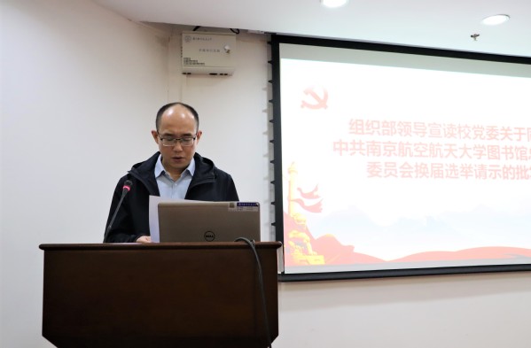 大会在庄严的国歌声中拉开序幕,袁家斌首先汇报了此次大会筹备情况,方正宣读了校党委《中共南京航空航天大学委员会关于同意中共南京航空航天大学图书馆委员会选举请示的批复》。