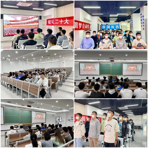 自动化学院学生党支部全体党员、入党积极分子于511报告厅等分会场集中观看党的二十大开幕,学习党的二十大精神,树立远大理想,争做时代楷模。