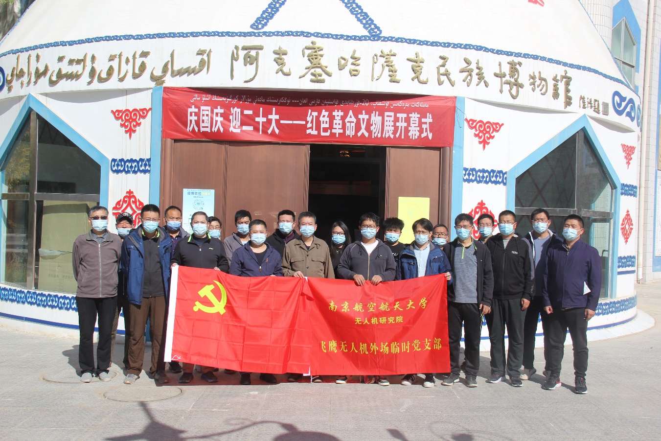 活动最后,全体党员和队员们认为,通过参加此次活动,触摸阿克塞这片红色热土传承下来的红色血脉,重温那段艰苦奋斗的岁月,感受到无穷的精神力量。大家纷纷表示,作为新时代的南航无人机人,要团结一心向党、铭记奋斗历史,勇担时代新使命,砥砺奋进新征程,在外场试验试飞的艰苦奋斗和日常科研创新攻关中贯彻落实好党的二十大精神,深刻领悟“两个确立”的决定性意义,以实干实绩谱写南航无人机事业发展的新篇章。