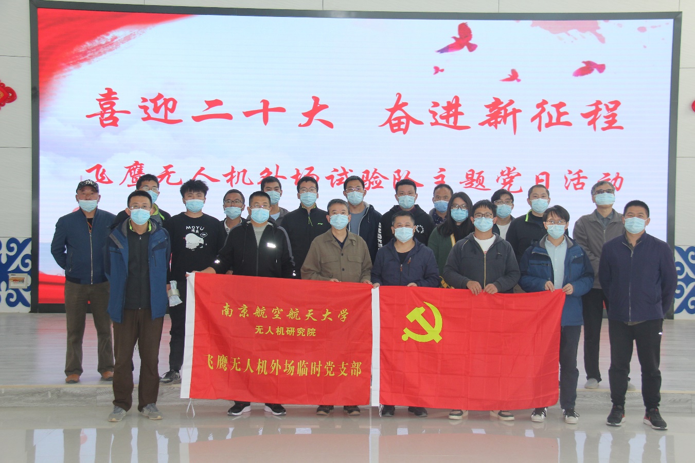 10月15日,在党的二十大即将召开之际,无人机研究院飞鹰团队外场临时党支部组织开展“喜迎二十大,奋进新征程”主题党日活动。