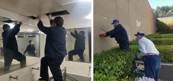 校园服务中心绿化保洁班组全员坚守岗位,在完成道路清扫、垃圾清运的同时,还对校内枯枝落叶、卫生死角、湖面垃圾等分区域逐步清理。绿化员工在进行秋季抗旱保苗、树木整形修剪等保障工作的同时,做好校内重要景观节点的养护工作。及时关闭快递超市,积极与快递公司和广大师生做好沟通,尽可能减少快递超市关闭给师生带来的不便。收发室严格按流程做好邮件消杀工作,确保校内邮路通畅,寄递平安。