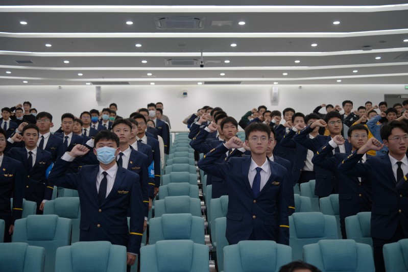 随后,飞行大队副大队长林冠兆带领现场全体学生干部进行宣誓。