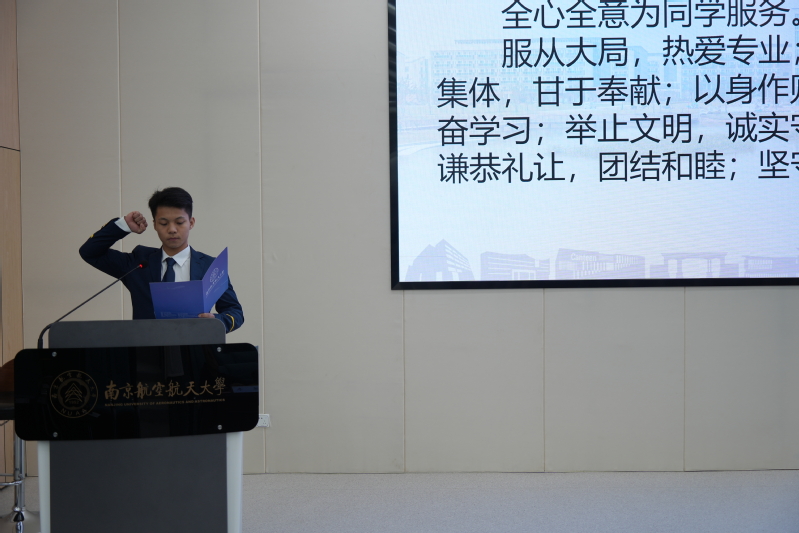 10月23日下午,通用航空与飞行学院学生干部聘任大会在天目湖校区牧星楼报告厅召开。学院党委副书记魏慧冬,辅导员孙献策、颜冲、宋歌、陆海林、陈冬,以及新一届主要学生干部参加了本次大会。大会由飞行大队秘书长麻栩铭主持。