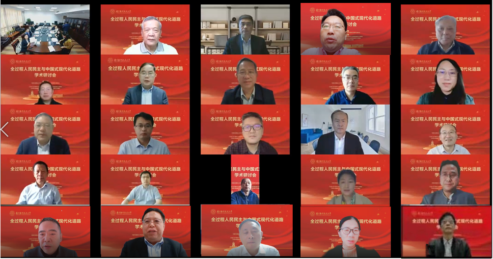 为献礼党的二十大胜利召开,为学习贯彻党的二十大精神做好理论方法准备,10月23日,“全过程人民民主与中国式现代化道路”学术研讨会在我校召开。中国历史唯物主义学会会长、中国社科院国家文化安全与意识形态建设研究中心主任、中国社科院大学特聘讲席教授侯惠勤,中国历史唯物主义学会原副会长、国防大学政治学院教授何怀远少将,我校党委副书记、纪委书记杭育新出席会议。来自全国各地多所高校、科研机构的知名马克思主义理论研究专家、教师及青年学者共计400余人通过线上线下相结合的方式参会。