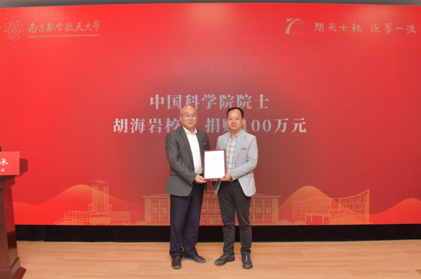 胡海岩通过线上连线,向南航七十华诞表示祝贺。他深情回顾了跟随张阿舟老师在南航攻读固体力学专业博士,以及留校任教20余年、从事管理工作10年的美好时光,讲述了捐资支持力学专业教育教学,助力学校一流学科建设、一流人才培养的初心,并祝福南航蒸蒸日上,桃李满园,乘风破浪,再创辉煌。