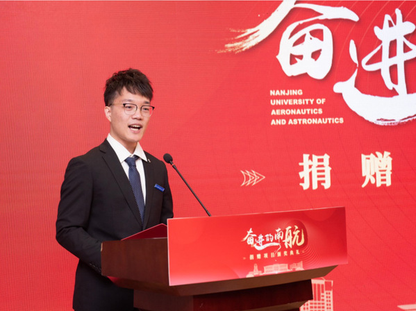 张颂杰作为设奖单位代表讲话。他介绍了瑞华慈善基金会的基本情况、价值理念、目标愿景,以及多年来与南航进行资助合作的深厚渊源,勉励广大南航学子始终牢记嘱托,听党话、跟党走,怀抱梦想、脚踏实地,敢想敢为、善作善成,立志做有理想、敢担当、能吃苦、肯奋斗的新时代好青年。