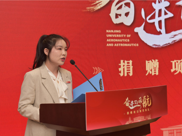 在随后举行的“奋进的南航”捐赠项目颁奖典礼中,活动由刘宇雷主持。姜斌介绍了“奋进的南航”捐赠项目总体情况,并宣读获奖名单。