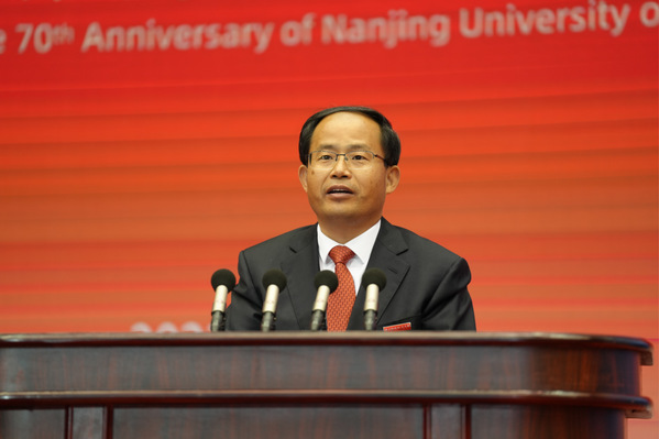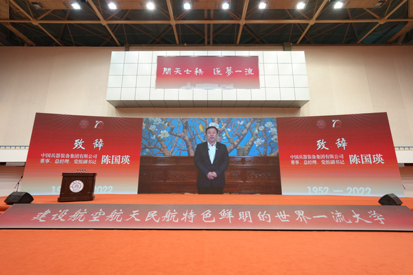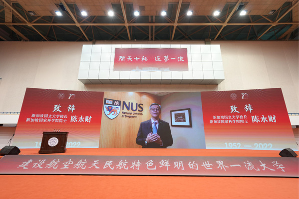 校长单忠德代表学校作了题为“问天七秩,逐梦一流,奋力建设航空航天民航特色鲜明的中国特色、世界一流大学”的致辞。他指出,南航在抗美援朝烽火中,勇当新中国航空事业的开路先锋;在改革开放大潮中,铸就新时期科教兴国的中坚力量;在实现民族复兴的征程中,书写新时代高等教育的一流篇章。在70年办学历程中,积淀形成了赓续相传的“党建领航、思想铸魂”政治传统、“航空报国、贡献国防”办学传统和“团结协作、志在超越”文化传统。他强调,习近平总书记对教育事业、南航发展给予了亲切关心和深情厚望,为学校迈出建设高水平研究型大学更大步伐提供了根本遵循。南航将坚持党建领航,在弘扬优良传统中把牢办学方向;坚持学科牵引,在突出特色发展中矢志争创一流;坚持服务急需,在强化育人铸器中担当强国重任。