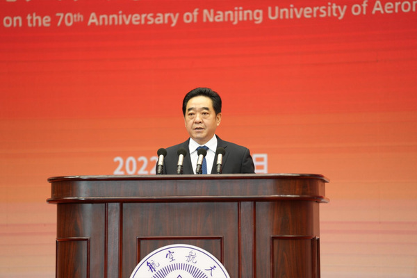 张爱军在讲话中指出,南航建校70年来,始终与祖国同向同行,与江苏并肩前行,在扎根中国大地服务国家重大战略中,在深耕江苏沃土服务国民经济主战场上贡献了南航智慧和南航力量。他强调,南航是江苏高等教育的“国家队”“排头兵”,期待南航聚焦深入学习贯彻党的二十大精神,聚力守牢正确办学方向;聚焦立德树人根本任务,聚力人才自主培养;聚焦服务国家战略,聚力科技自立自强;聚焦江苏高质量发展和现代化建设,聚力融入江苏、服务江苏;聚焦一流大学建设,聚力高站位办学治校、高水平人才培养、高标准学科布局、高质量科技供给、高品质校园生态,为中华民族伟大复兴和“强富美高”新江苏建设作出更大贡献。