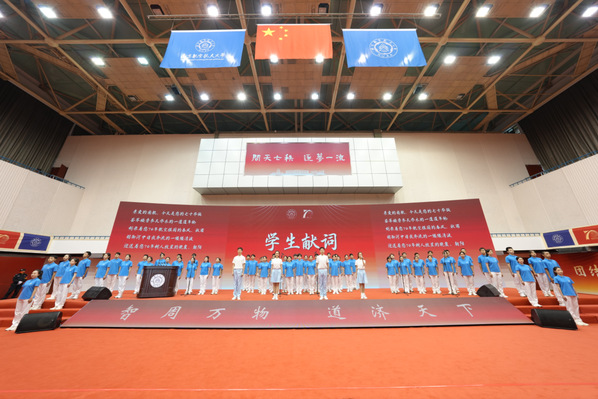 70名学生代表登台献词。“荟萃楼旁参天乔木的一道道年轮,刻录着您七十年航空报国的春风秋雨”“翠屏峰汇聚八方云霞,喷薄出您创建一流的光荣与梦想”“创建一流,逐梦有我”“航空报国,强国有我”“伟大征程,复兴有我”的铮铮誓言响彻全场。南航学子将勇担新时代重任,传承“航空报国”的红色基因和“志在长空”的蓝色梦想,努力成长为堪当民族复兴重任的时代新人。