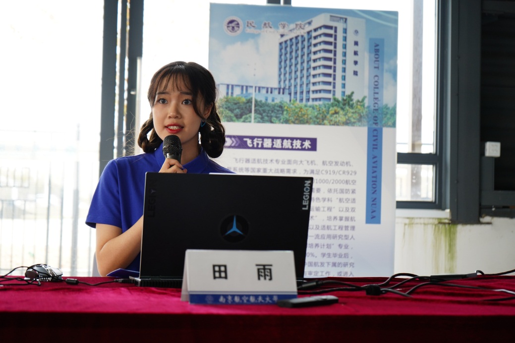 2022级飞行器适航技术专业学生代表田雨发言。联合实验平台的建立极大丰富了适航技术专业学生的实习实训和创新实践体系,为提高工程实践创新意识和能力搭建了一流平台、提供了一流条件。依托处于适航状态的737飞机,开展大学生科创项目与专业实践课程的学习,也将更加有助于深入掌握适航专业知识和技能。作为适航专业学生,将始终践行“智周万物,道济天下”的校训精神,珍惜在校期间学习机会,依托联合实验平台,提高创新思维和实践素养,砥砺奋进、勇毅前行。
